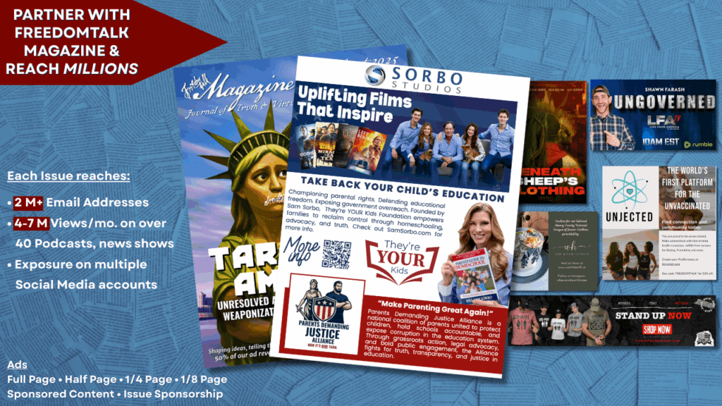 Advertising with us goes far beyond a page placement. Each partnership includes brand development, media outreach, show bookings, and professional editorial support designed to amplify your message. Our loyal, engaged audience trusts FreedomTalk as a mission-driven platform, giving your brand visibility, credibility, and real results.